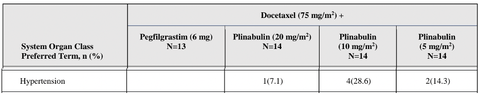 This contradicts data in the JAMA paper, which notes 7 cases of hypertension in the Plinabulin arms (vs 0 in the control).