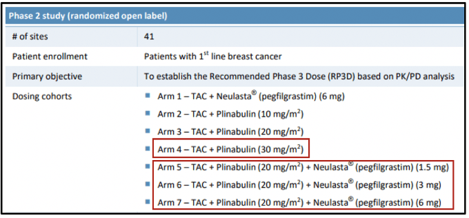 “The second trial, PROTECTIVE-2, is a Phase 2/3 trial of Plinabulin in combination with a myelosuppressive chemotherapeutic regimen composed of three agents, Taxotere (docetaxel), Adriamycin (doxorubicin) and Cytoxan (cyclophosphamide) in 336 patients with solid tumors (breast cancer) in China and the Ukraine.”