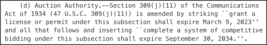 If the FCC agrees to reconfigure the band as NextNav proposes, it’s difficult to see how the agency isn’t statutorily required to conduct a public auction. Section 309(j) of the Communications Act orders competitive bidding if there are likely to be mutually exclusive applications for spectrum – and there would be interest in newly free low-band broadband spectrum.