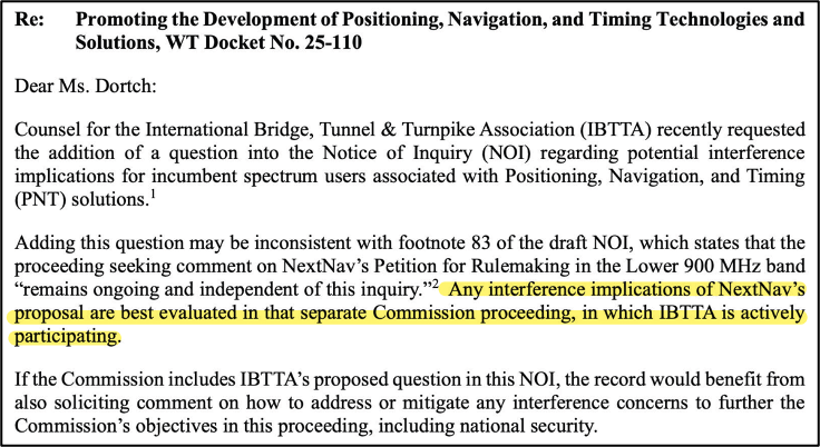 When NextNav tried to keep the question of interference out of the NOI, they flagged what their concern is about the whole issue, and that they ought to be living with the FCC engineers to prove their assertion. We have yet to see that. Yes, they have their own studies… But we got to move from paper to real-world studies… And I think [the lack of interference studies] will block things.”
