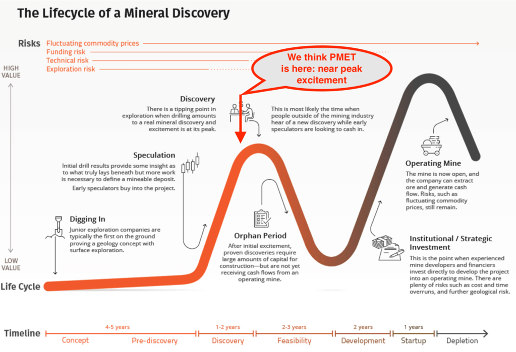 Note: We worked with a mining sector analyst to help us interpret PMET’s drilling results. The analyst is a licensed Professional Engineer with senior operational mining experience.