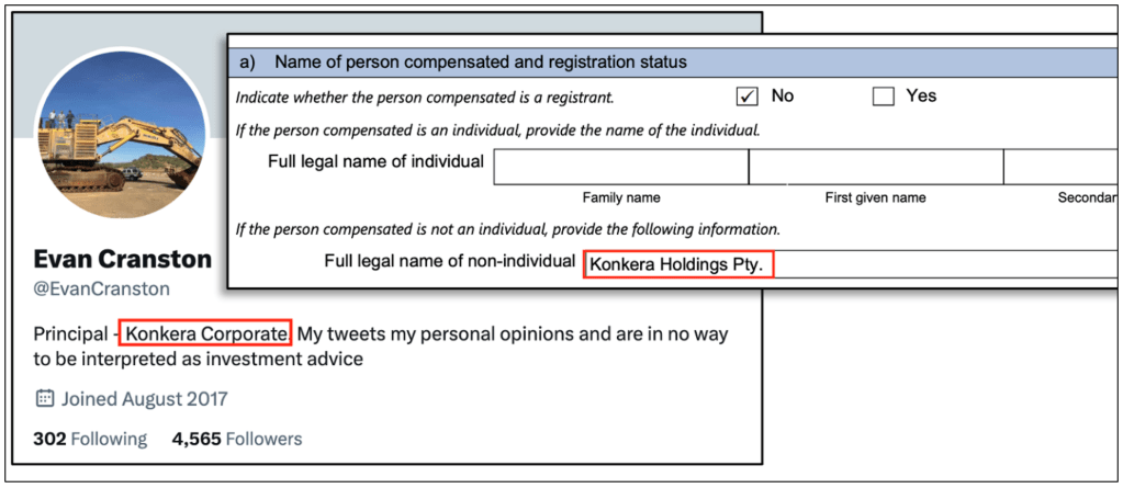 Cranston began promoting Patriot on Twitter in February 2022. “I’ll add this to my list of potential [unicorn] companies. Not many companies have this scale.” Cranston has tweeted frequently in support of PMET since. Although his role as broker can be discovered in filings, we do not believe Cranston has disclosed the relationship to his Twitter followers.