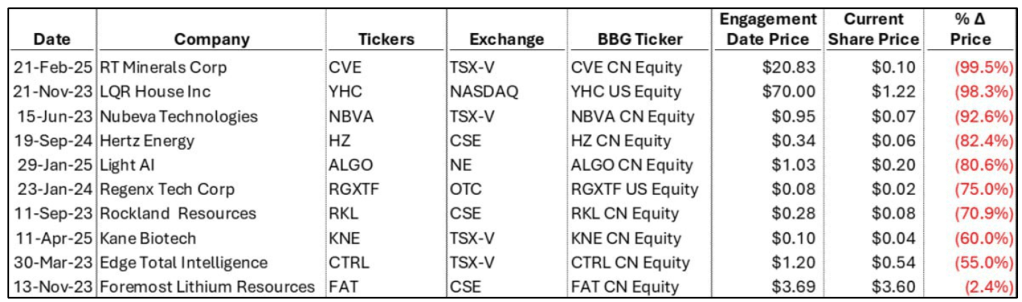OTB’s track record also speaks for itself with companies down an average of -71% since engagement date.