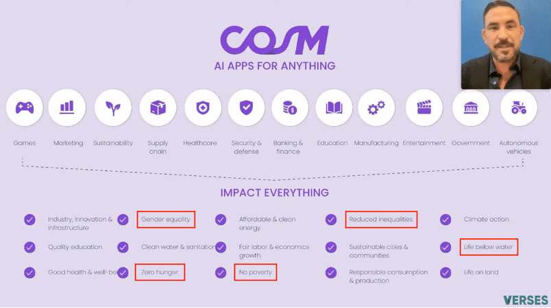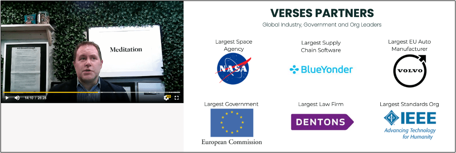 During his presentation at the conference, Rene touted a Verses team from companies like Apple, Microsoft, Google, Samsung, Goldman Sachs, Mercedes Benz, and UNICEF.