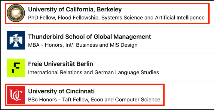 - President claims he completed a PhD at UC Berkeley in Artificial Intelligence, but our investigation finds this is likely fabricated. He also misrepresents his undergraduate degree.