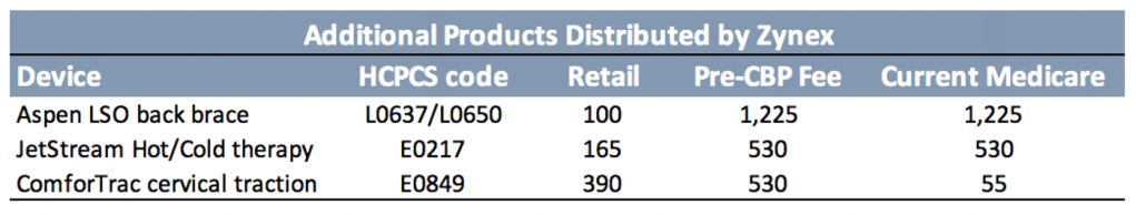 We note that another round of Competitive Bidding will take effect in 2021 and back braces are included for the first time, cutting reimbursement for a potentially significant ZYXI earnings contributor. The lack of disclosure here is concerning as any change in reimbursement would have a relatively large effect on overall profitability.