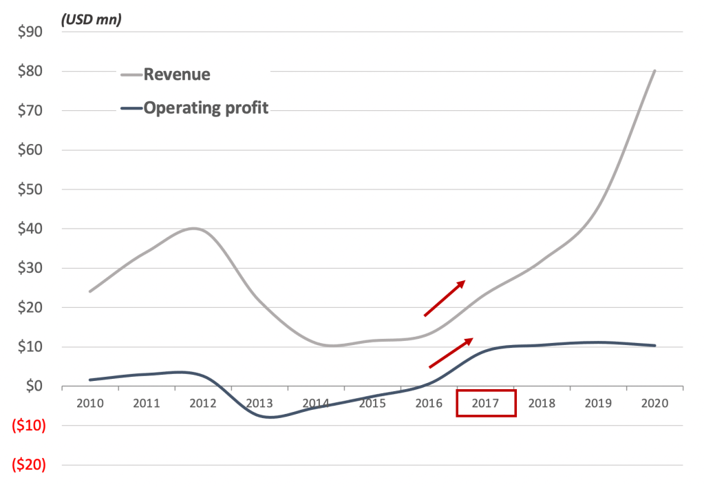Then out of nowhere the business improved. Zynex was offering the same unpatented, archaic TENS unit yet revenue per order nearly tripled from 2016 to 2017 – suddenly the business was profitable.